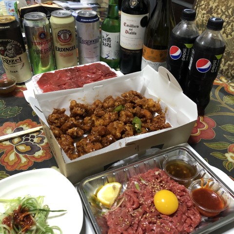저녁 메뉴로는 육회 & 닭강정 선택했습니다.
