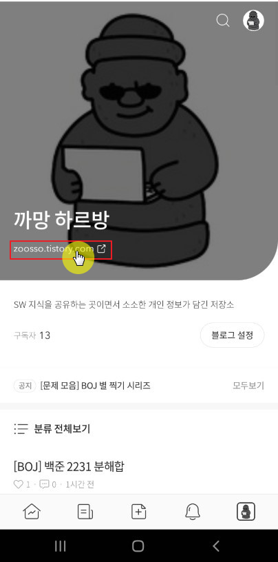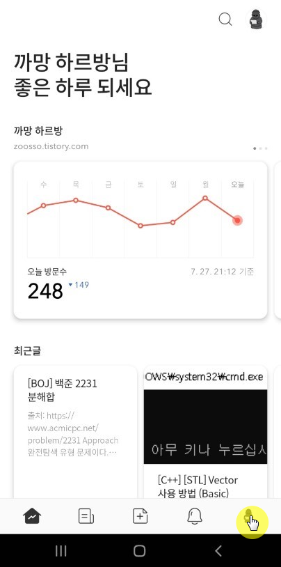 ① 티스토리 앱에서 하단의 블로그 아이콘 클릭