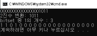 cout << "bitset 중 1의 개수 : " << bit.count() << endl;